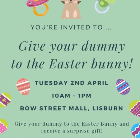 The Help Kids Talk Team have teamed up with the Easter Bunny again for Easter 2024. We will be in Bow Street Mall, Lisburn on Tuesday 2nd April from 10.00am until 1pm. Any child who gives their dummy to the Easter Bunny will receive a surprise gift. There were also be some activity sheets and the team will be on hand to offer some tips around supporting speech and language skills.