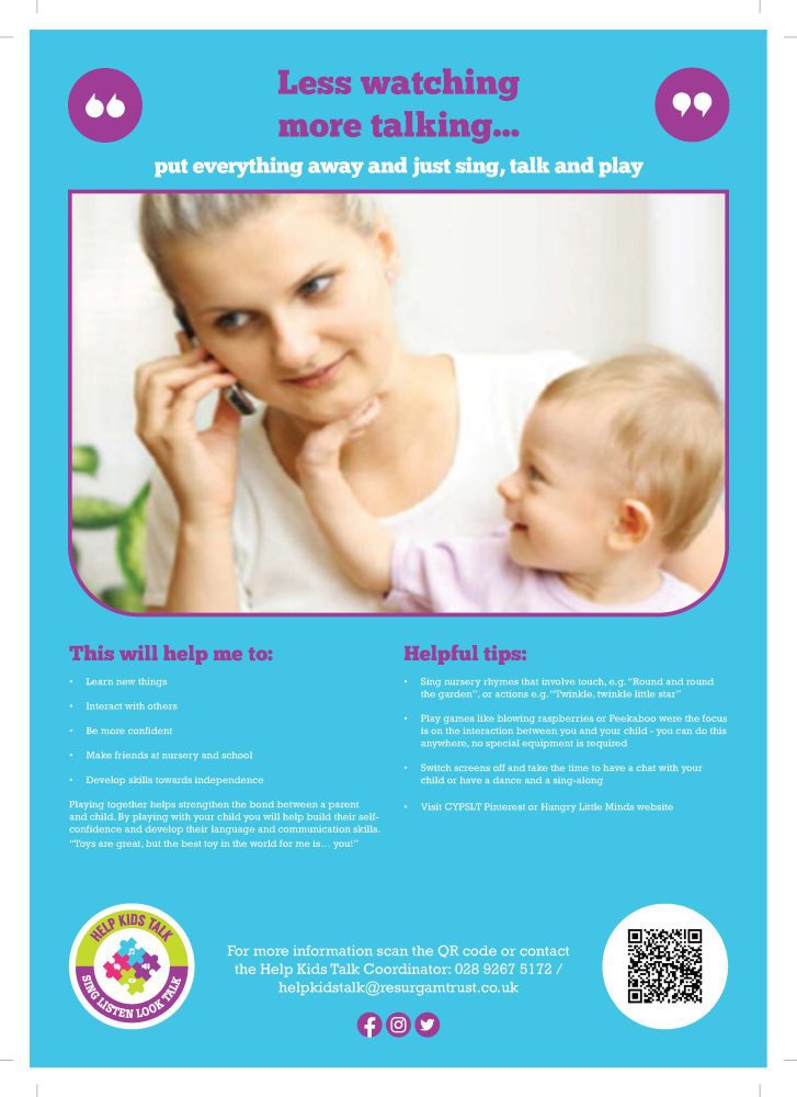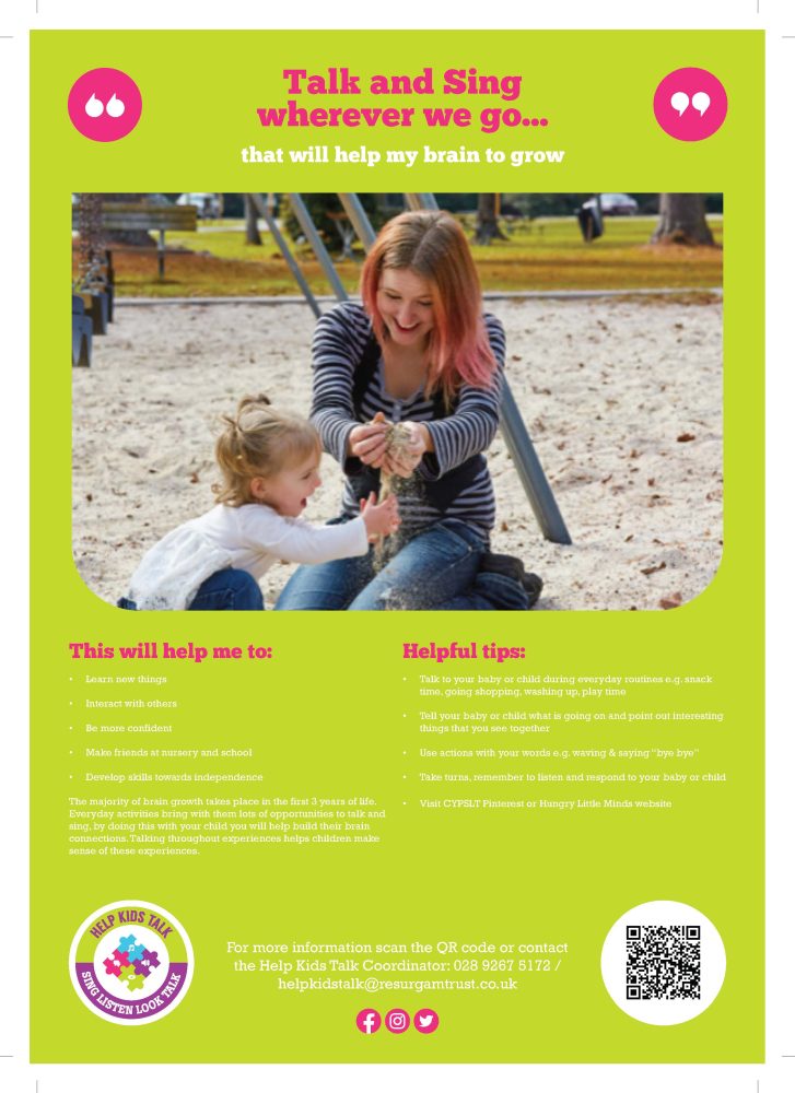 veryday activities bring with them lots of opportunities to talk and sing, by doing this with your child you will help build their brain connections. Talking throughout experiences helps children make sense of these experiences.